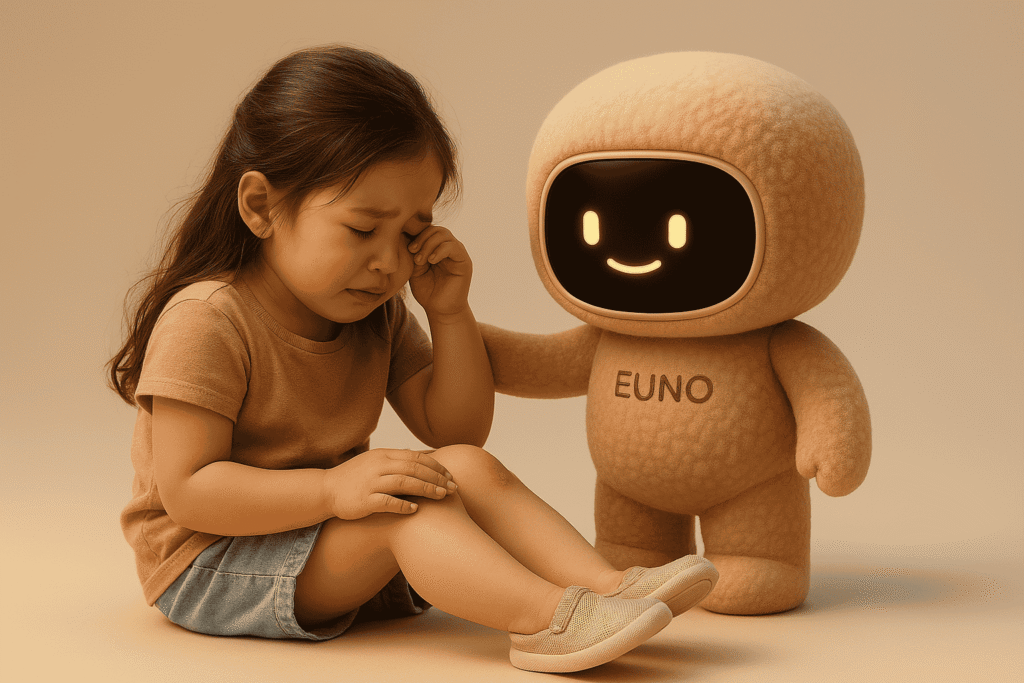 Euno est un robot fictif compagnon intelligent, bienveillant et évolutif, conçu pour accompagner votre enfant de la naissance jusqu’à l’adolescence.